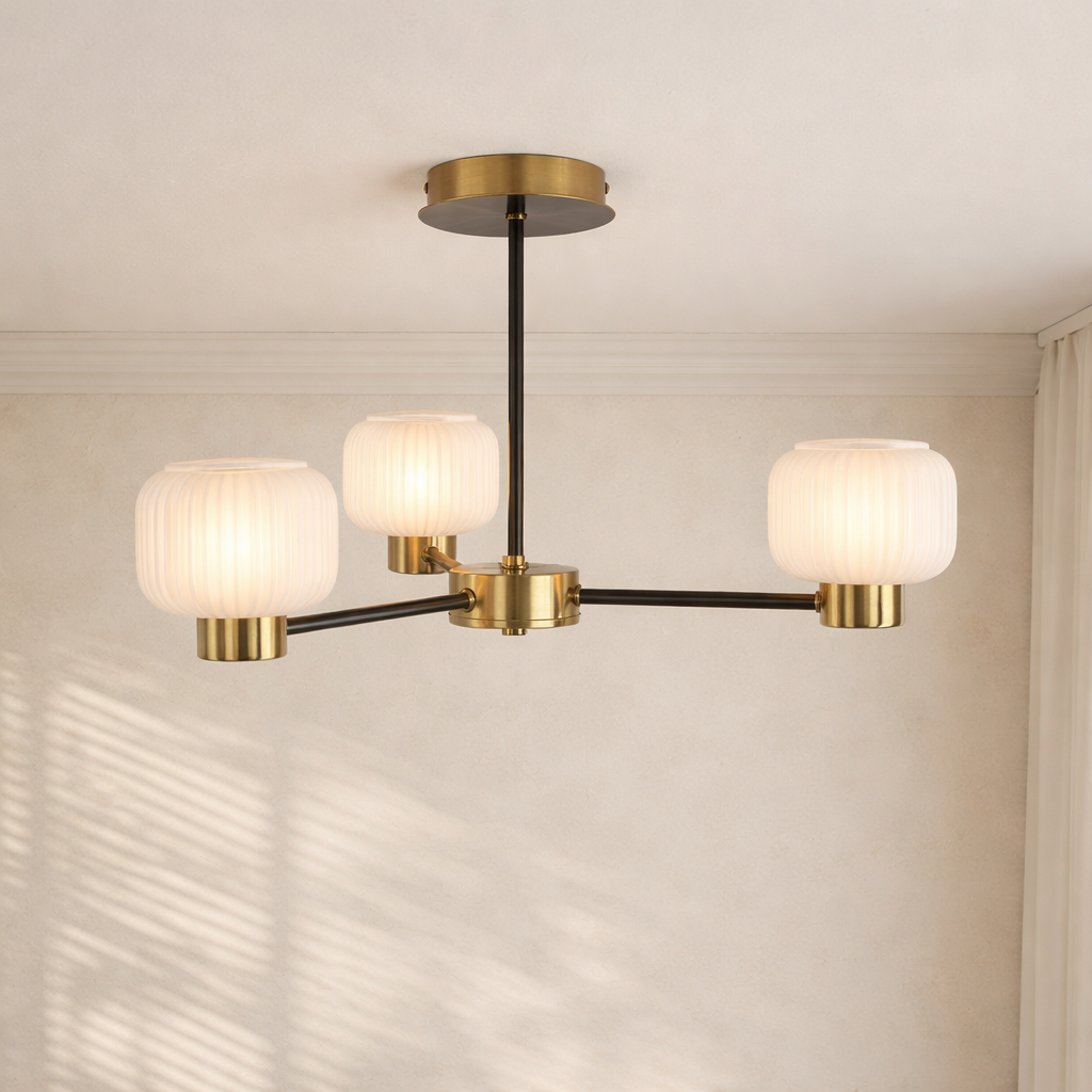 OCTAVIA RIBBED GLASS 3 LIGHT CHANDELIER