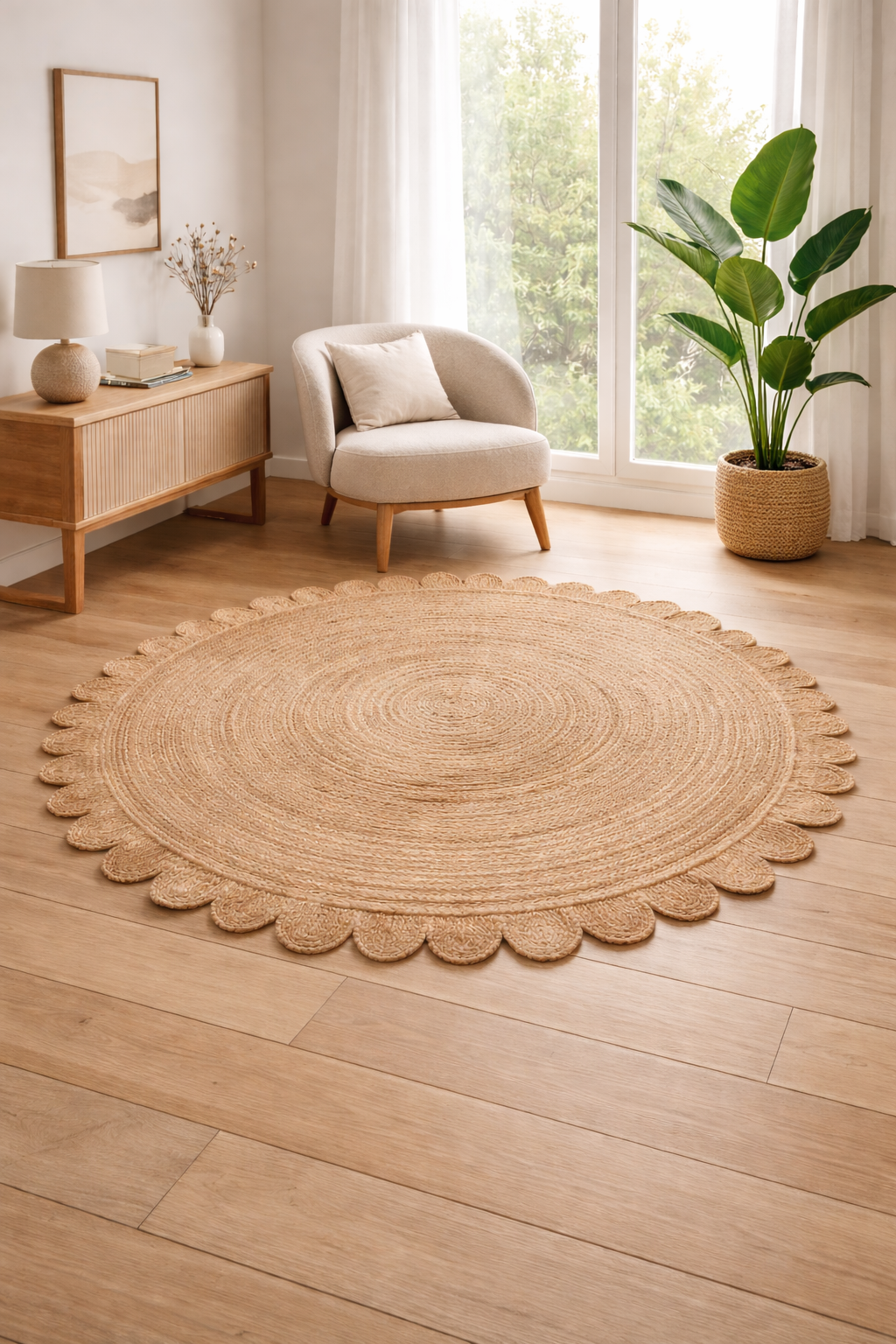 THINK RUGS SAVANNAH ROUND NATURAL JUTE FLATWEAVE RUG - 120CM